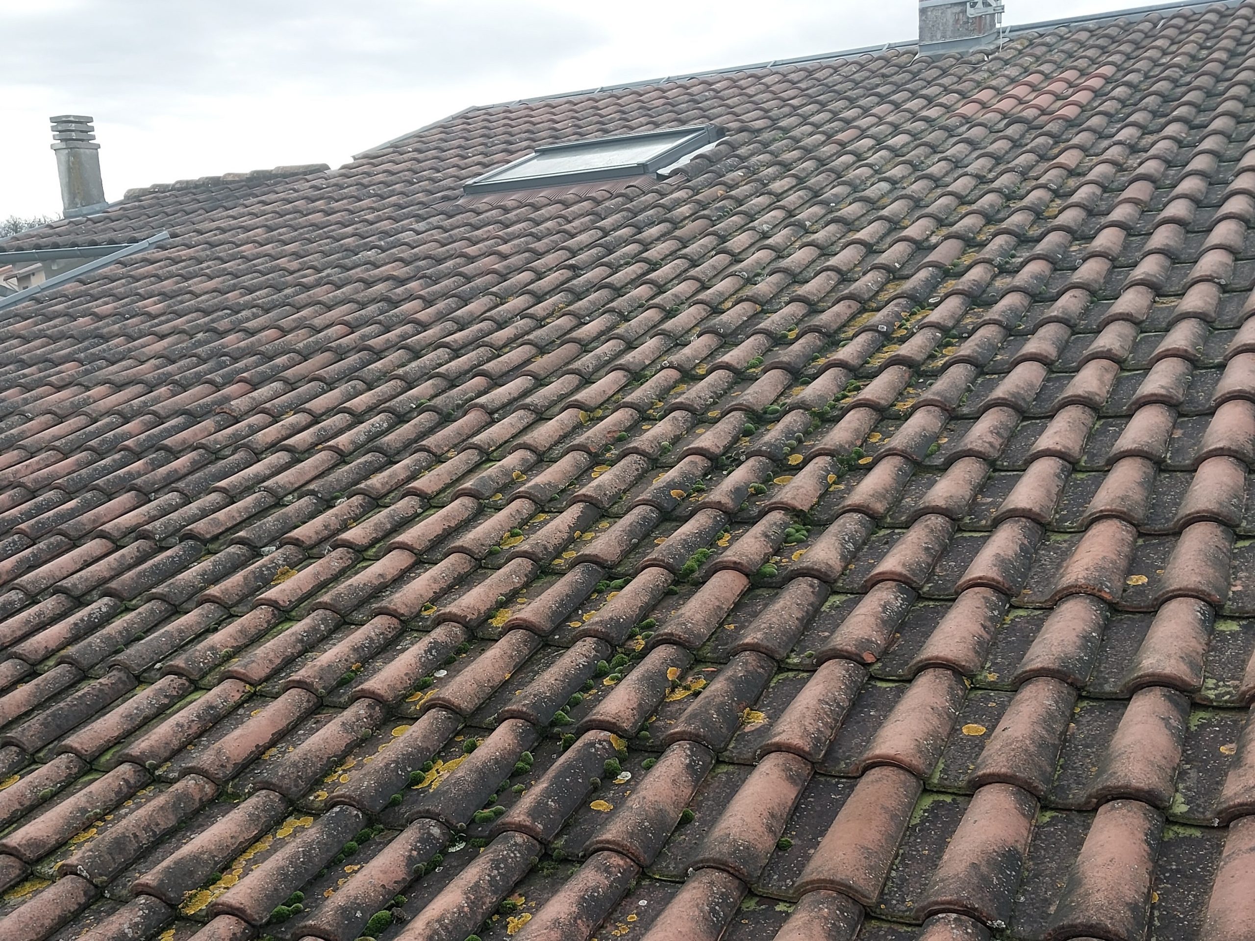Démoussage et nettoyage de toiture : élimination des mousses et impuretés pour une meilleure longévité.